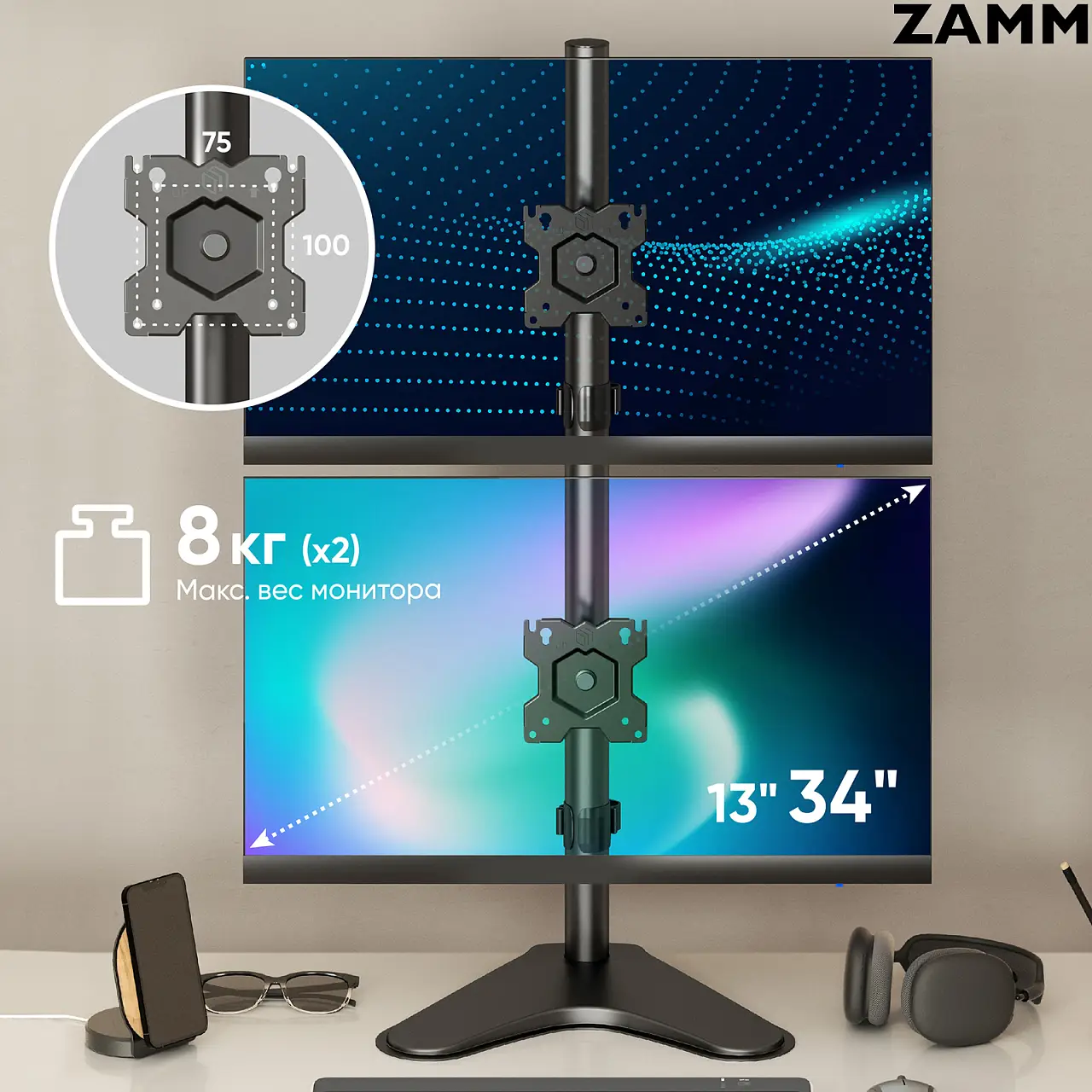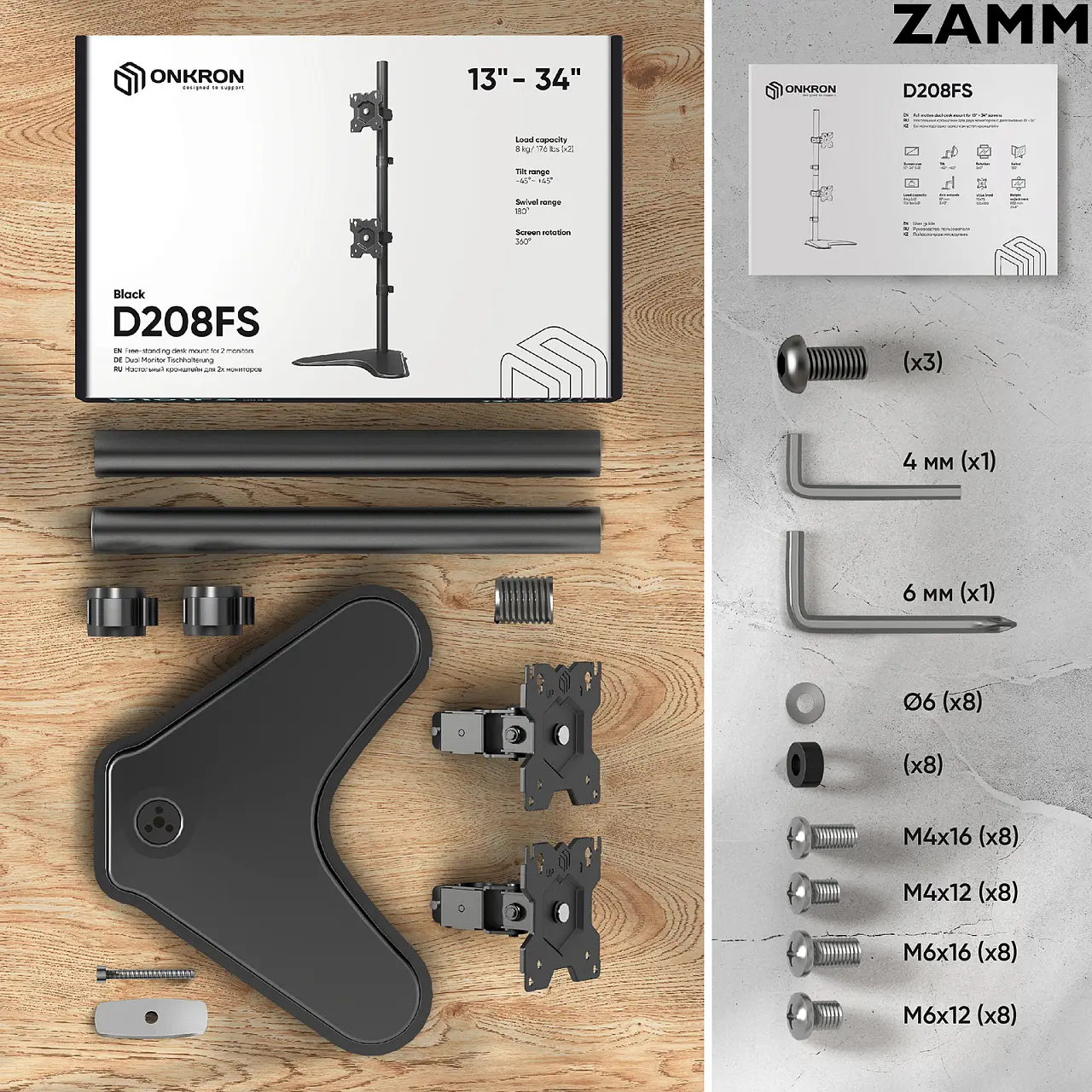 Кронштейн для двух мониторов ONKRON D208FS 13"-34" настольный