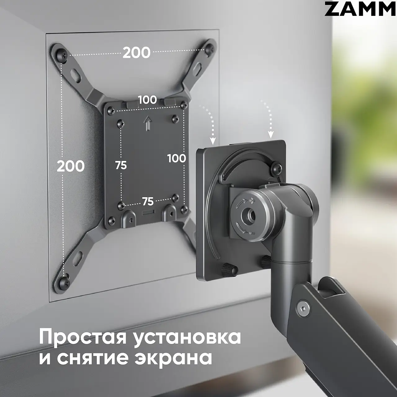 Стандарты VESA: 75x75, 100x100, 100x200, 200x100, 200x200 мм;