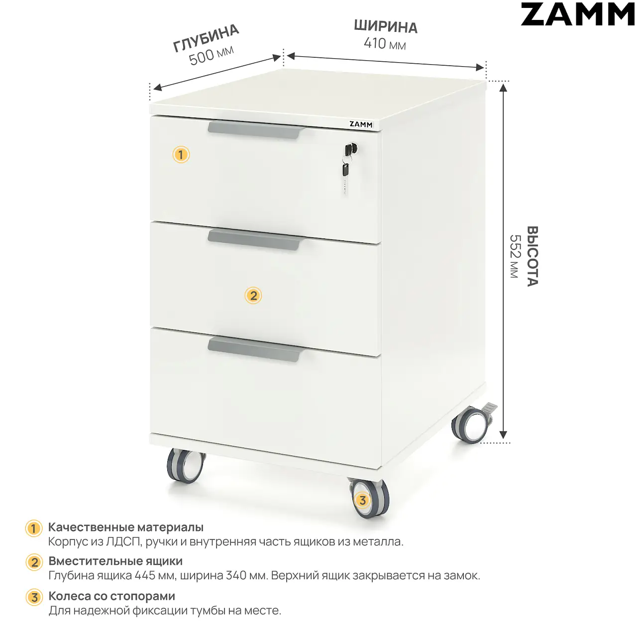 Тумба мобильная ZAMM Лайт. 3 ящика