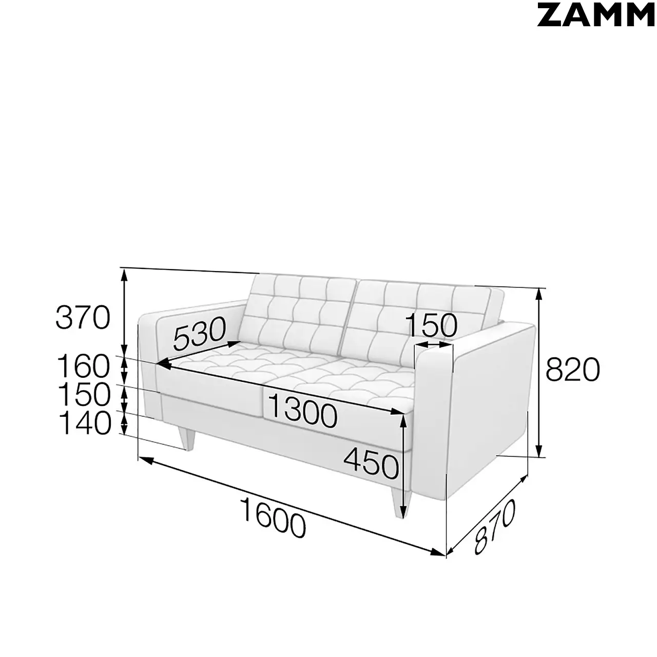 Размер 2-местного: 1600х870х820 (Ш×Г×В (мм);