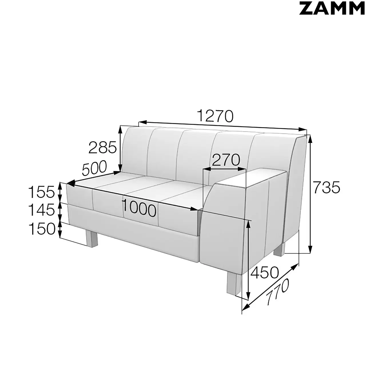 Размер 2-местного: 1270х700х450 (Ш×Г×В (мм);