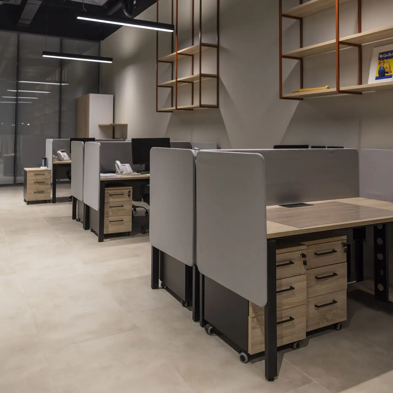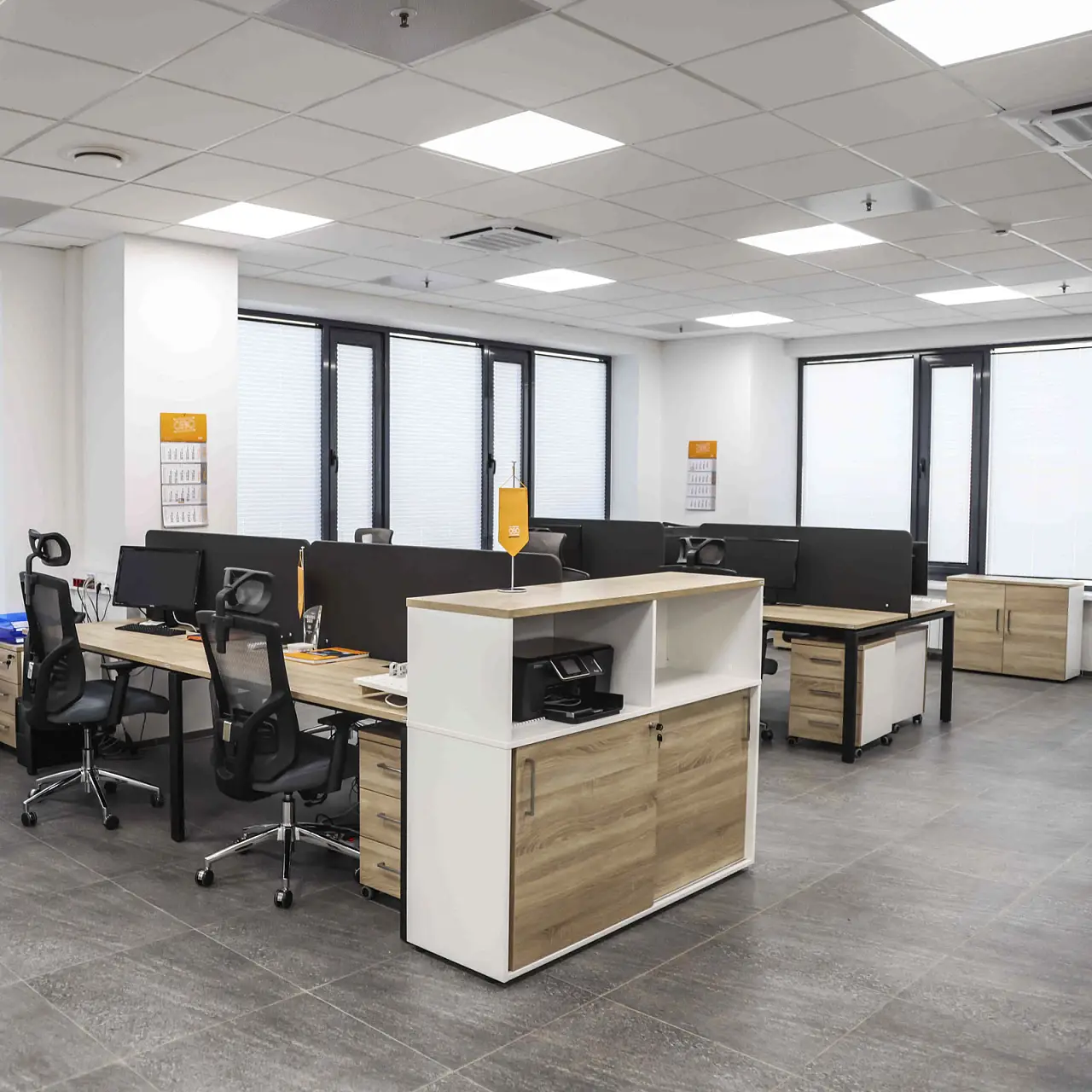 Прямолинейная форма стола «Формат» обеспечивает рациональную организацию рабочего места и удобство размещения сотрудников. Оптимальная глубина и ширина столешницы позволяют комфортно работать с документами и цифровыми устройствами, сохраняя порядок на поверхности. Модель легко интегрируется в модульные офисные системы и подходит для компоновки рабочих рядов.