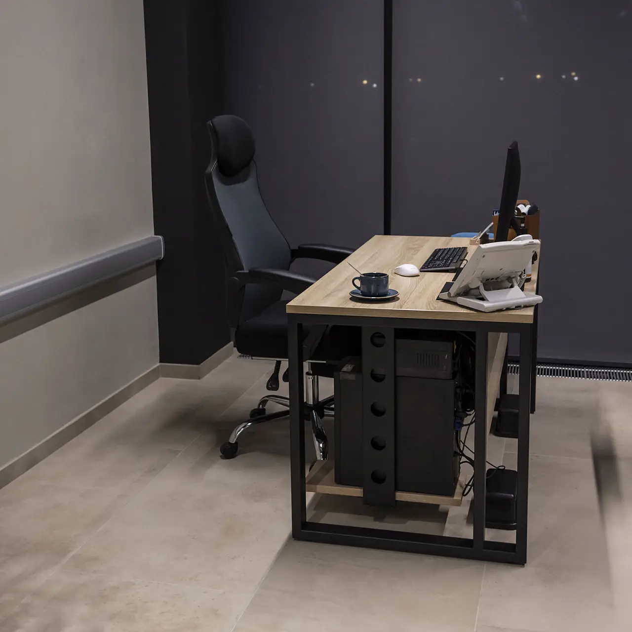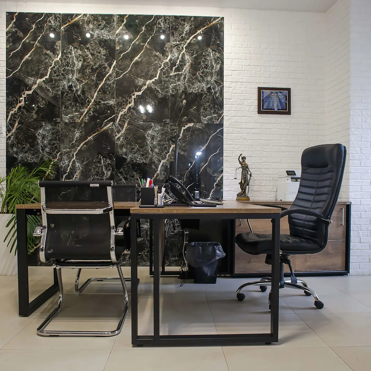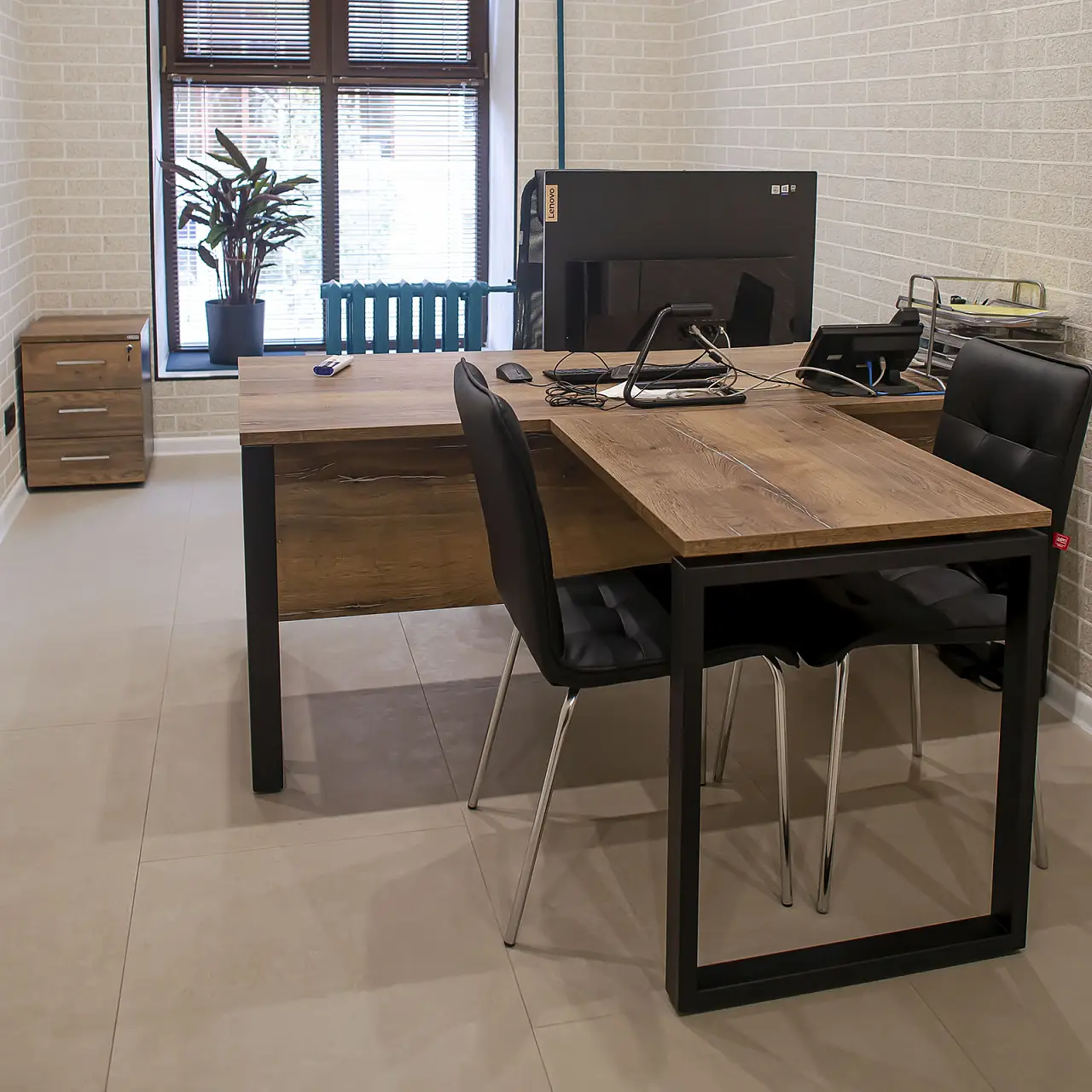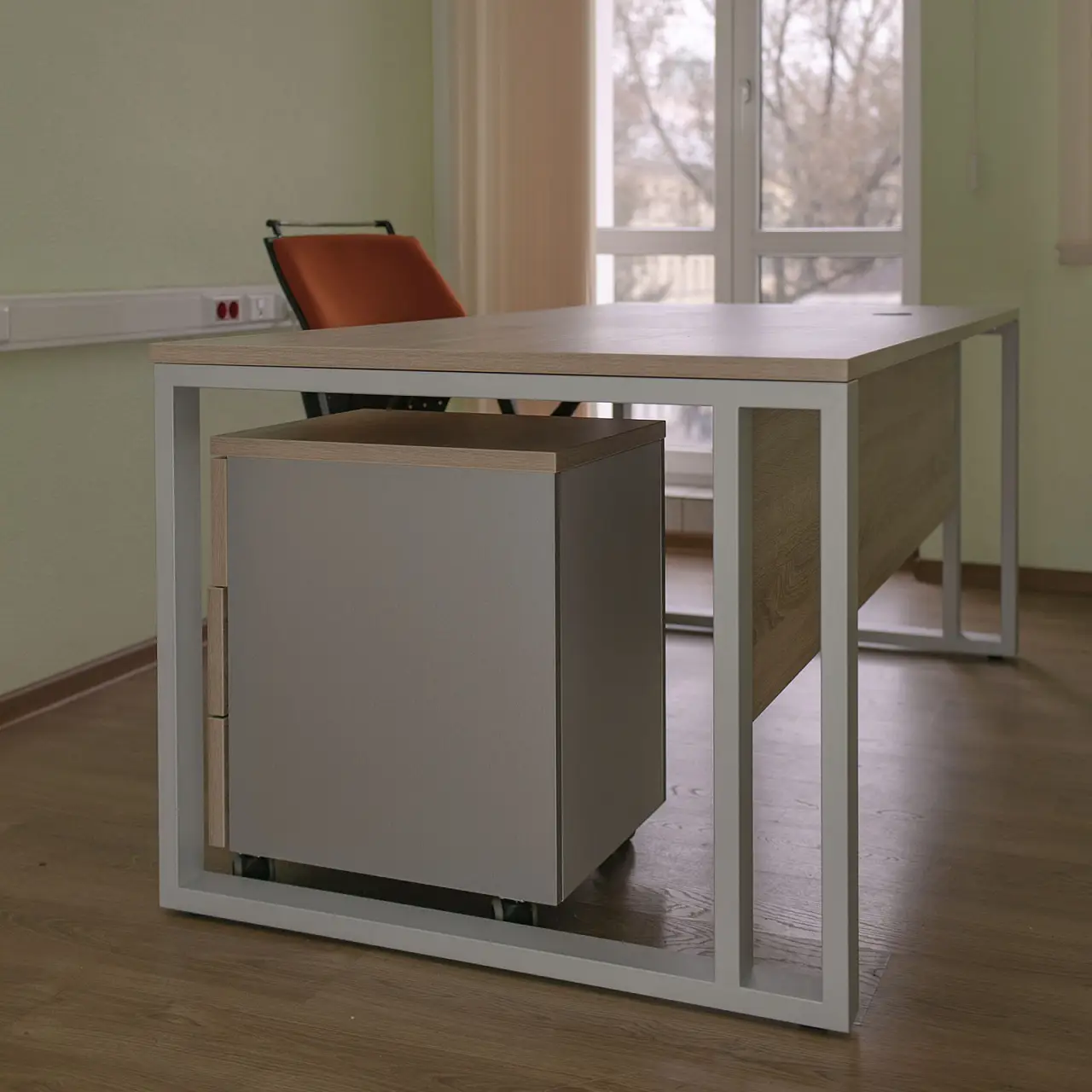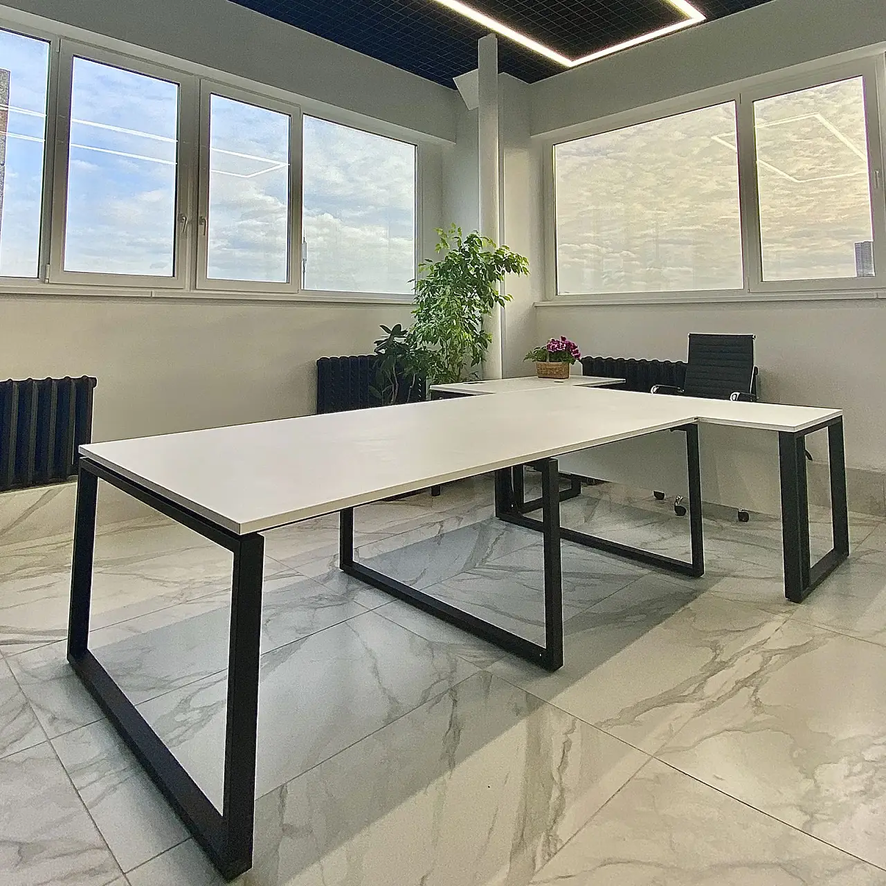 В основе стола используется прочный металлокаркас, обеспечивающий устойчивость и геометрическую точность конструкции. Каркас рассчитан на высокие нагрузки, не подвержен деформации и сохраняет стабильность даже при длительном использовании. Лаконичный дизайн металлических опор гармонично сочетается с современной офисной архитектурой и легко вписывается в корпоративные интерьеры.