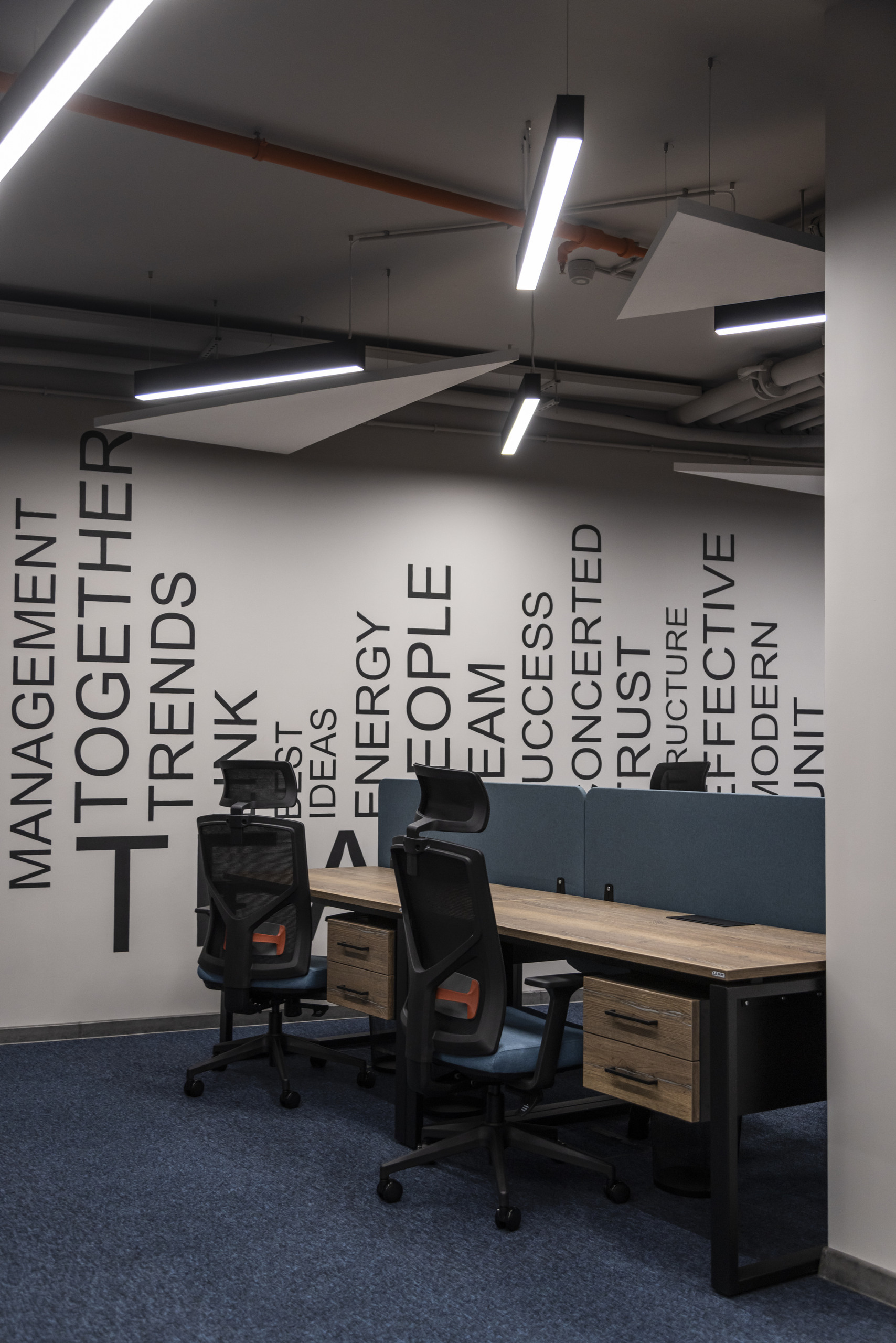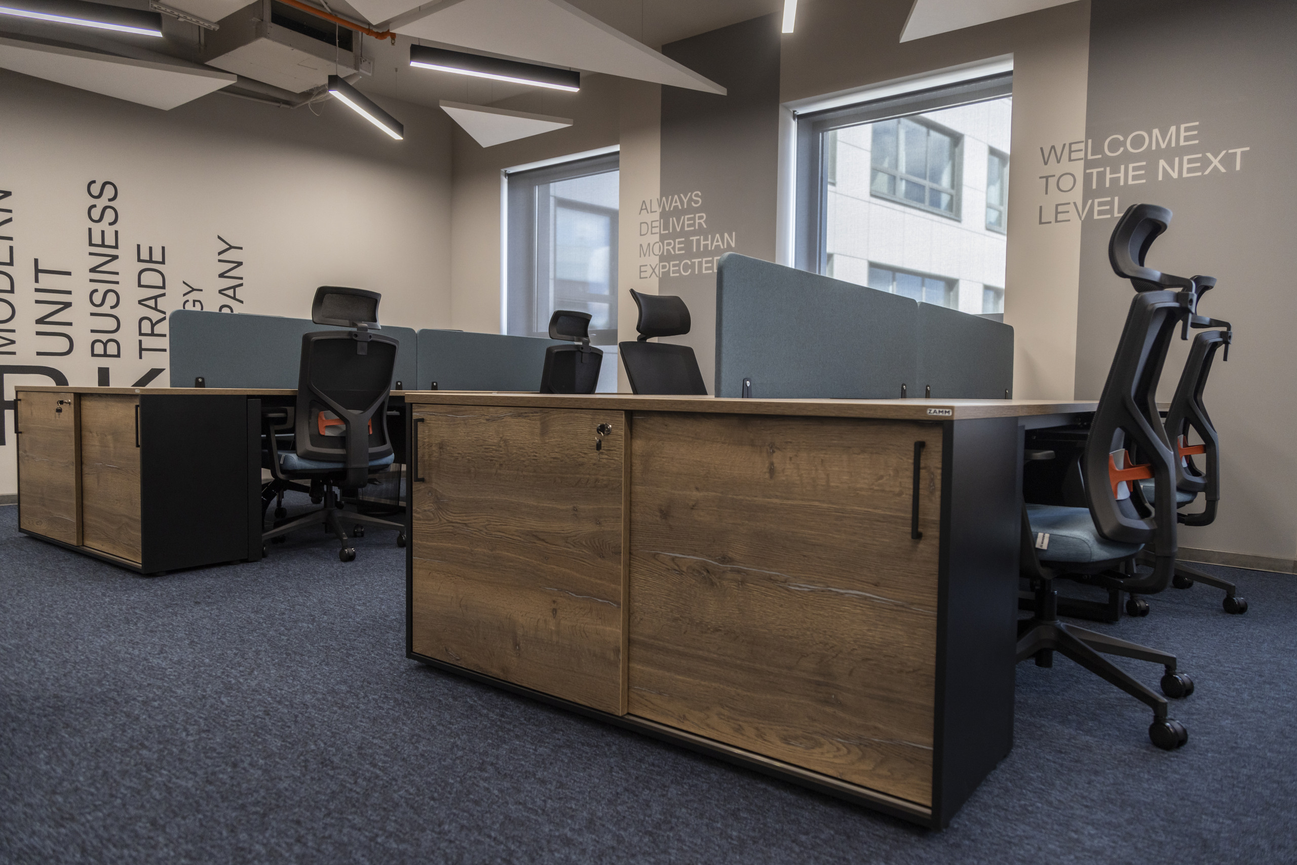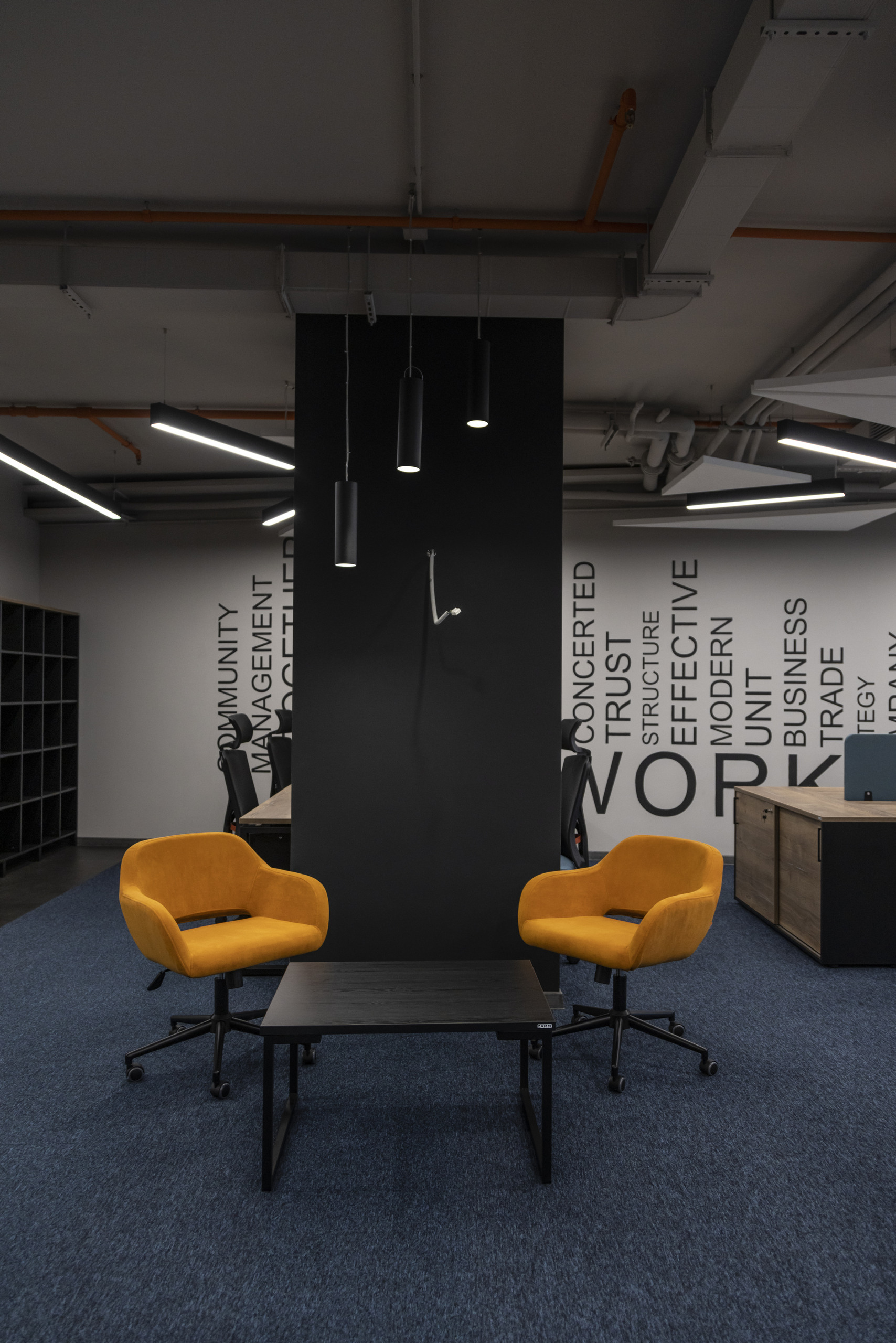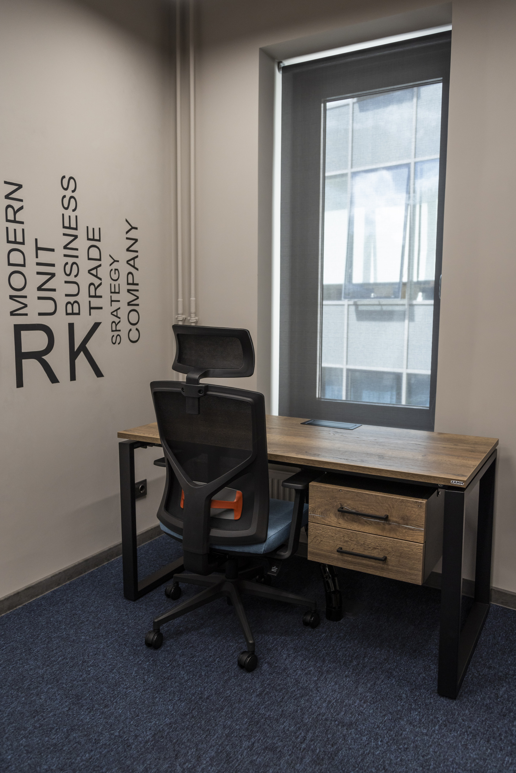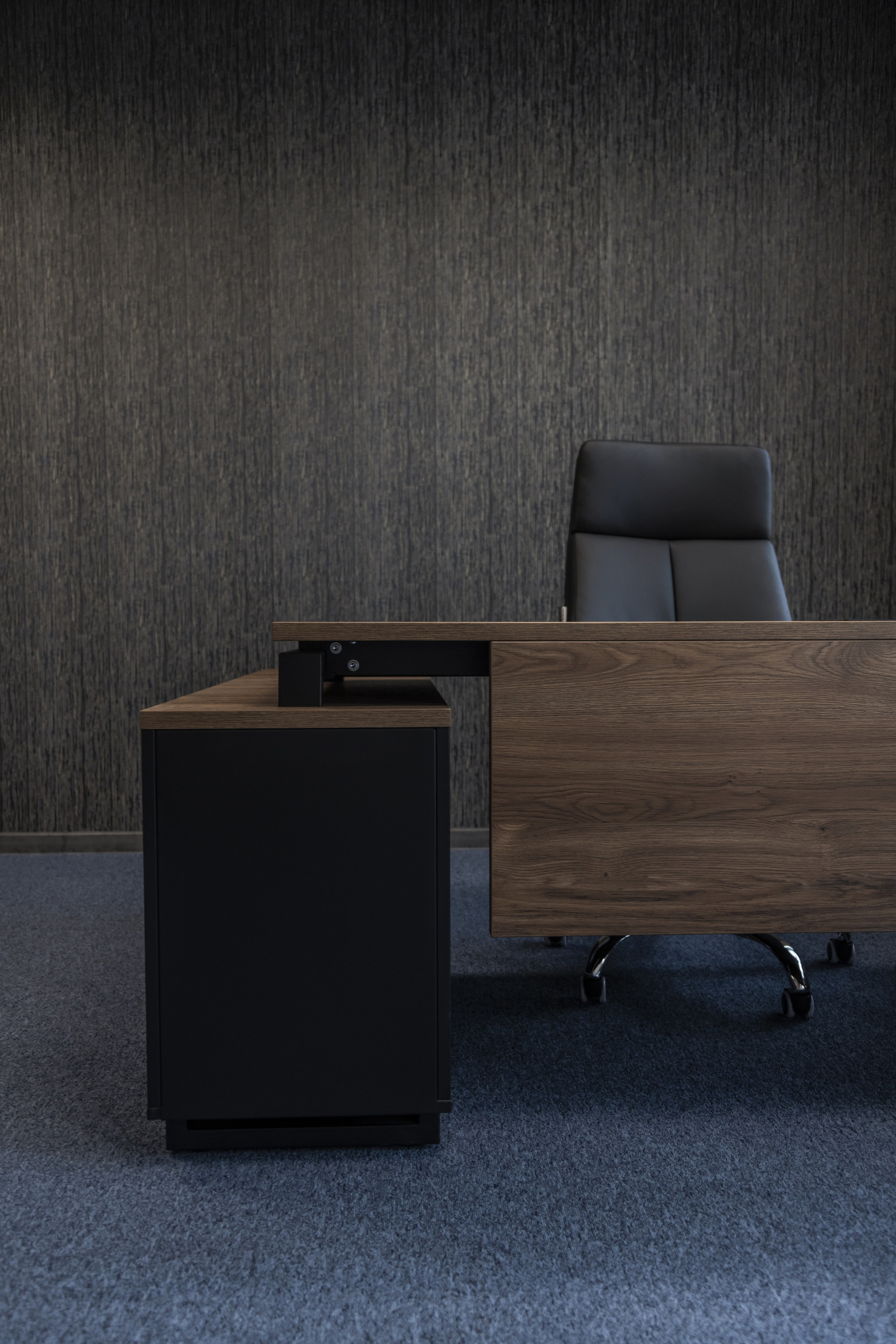 Конечно же стол для переговоров и стол для руководителя. Стильные, массивные - они задают тон всему помещению.