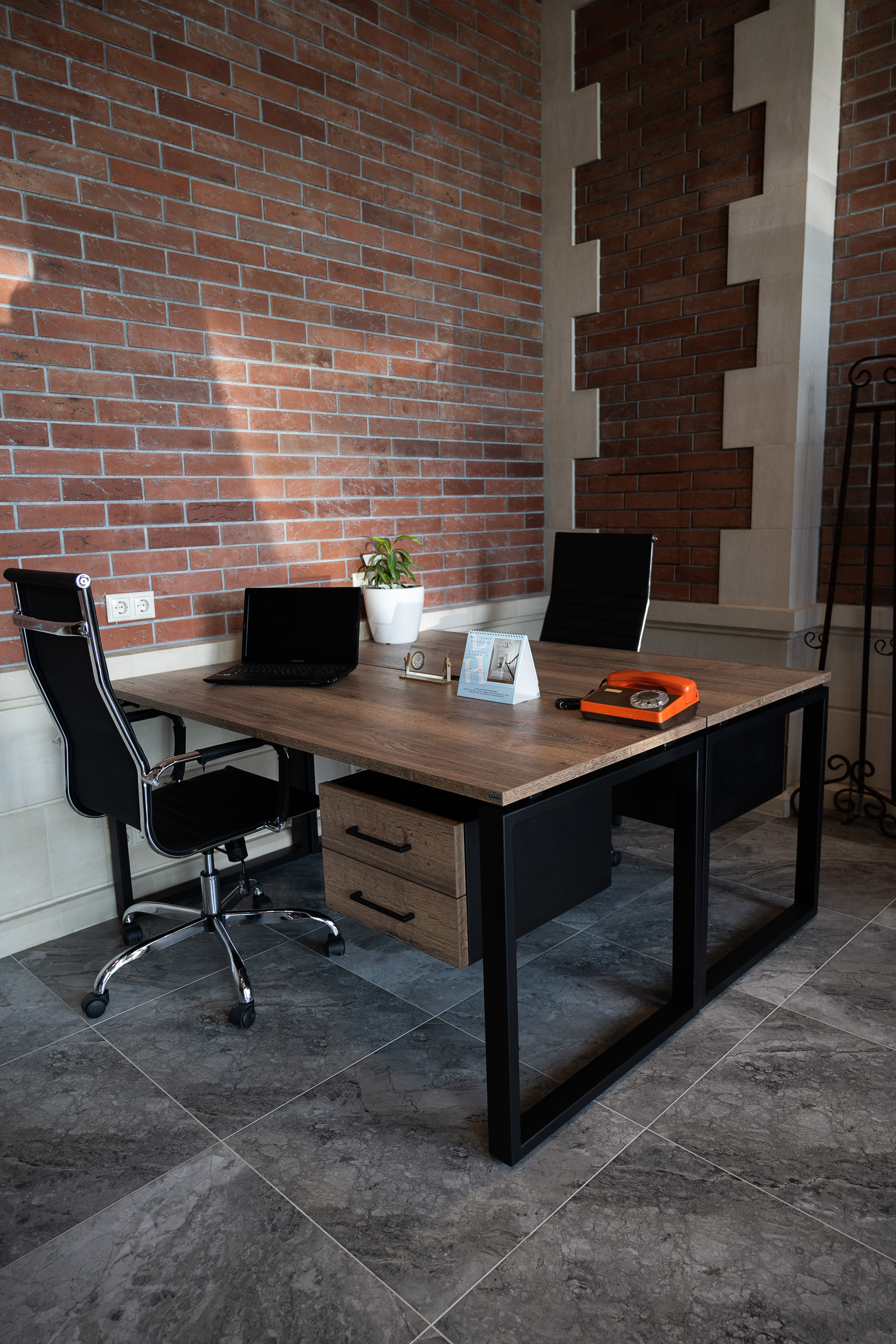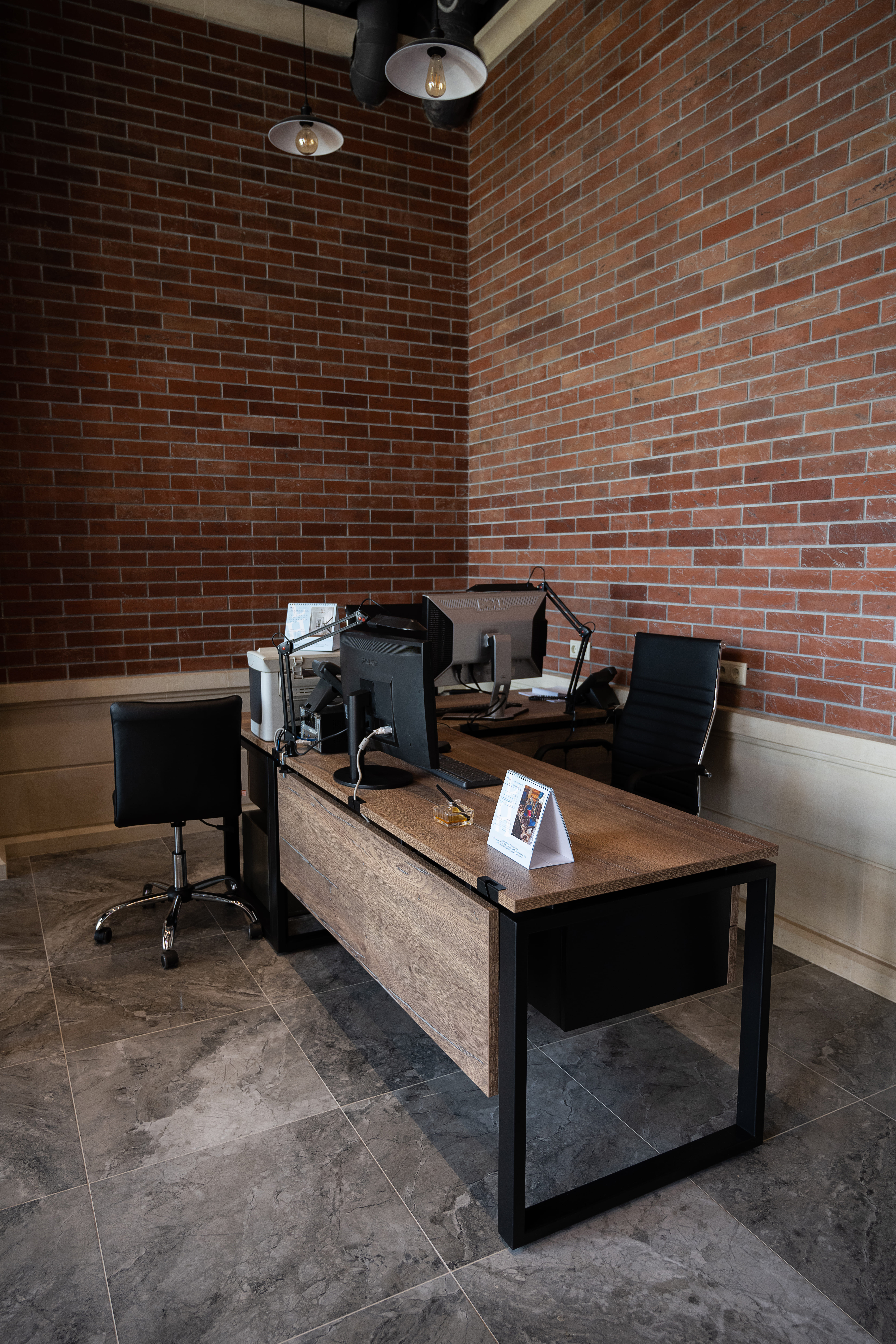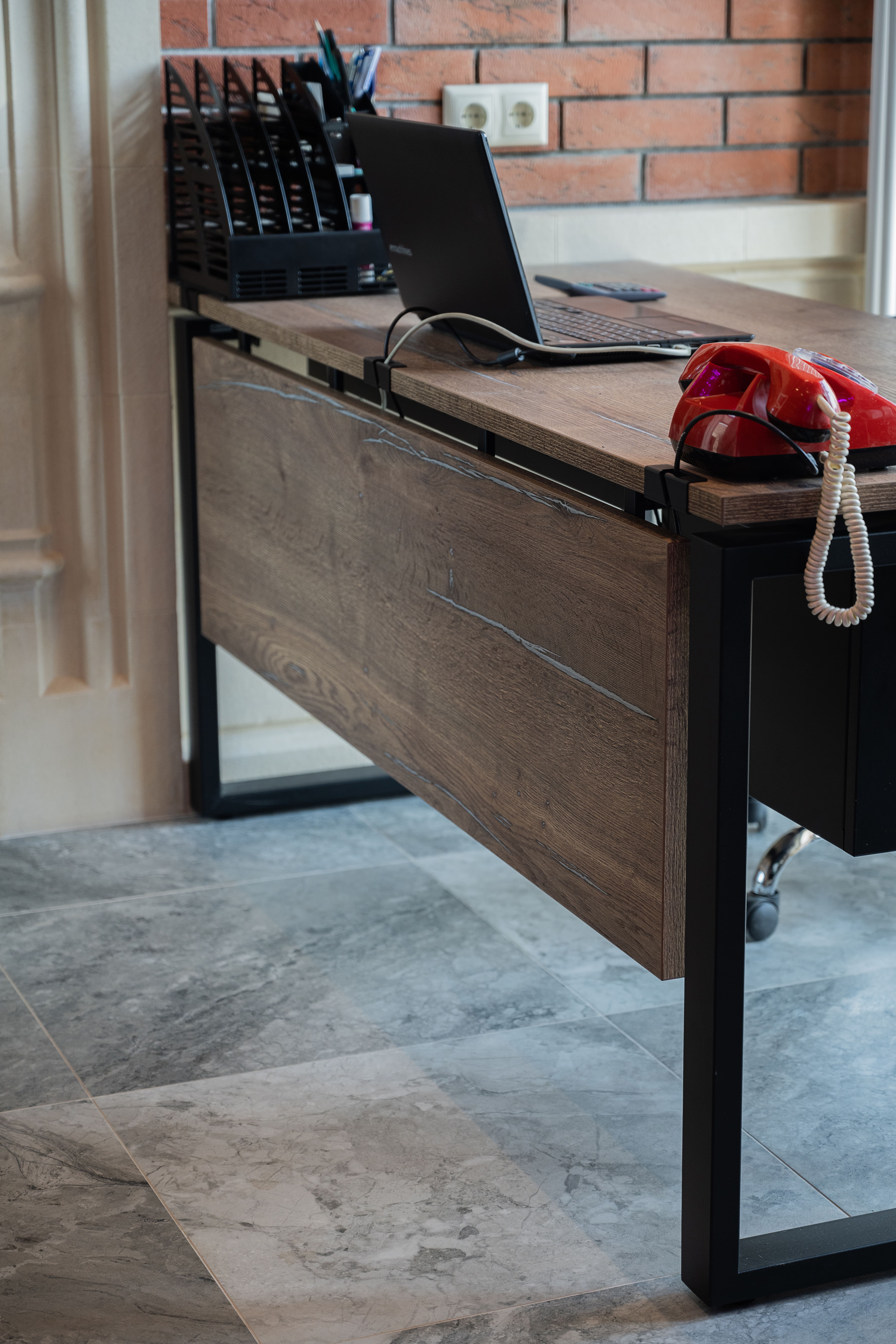 Офис на Новой Риге обрел задуманную эклектичность, благодаря сочетанию керамики ручной работы с современной мебелью ZAMM. В этом проекте мы использовали популярное сочетание столешницы в благородном цвете Дуб Галифакс и черного металлокаркаса. Оно придает интерьеру нотки изысканности.