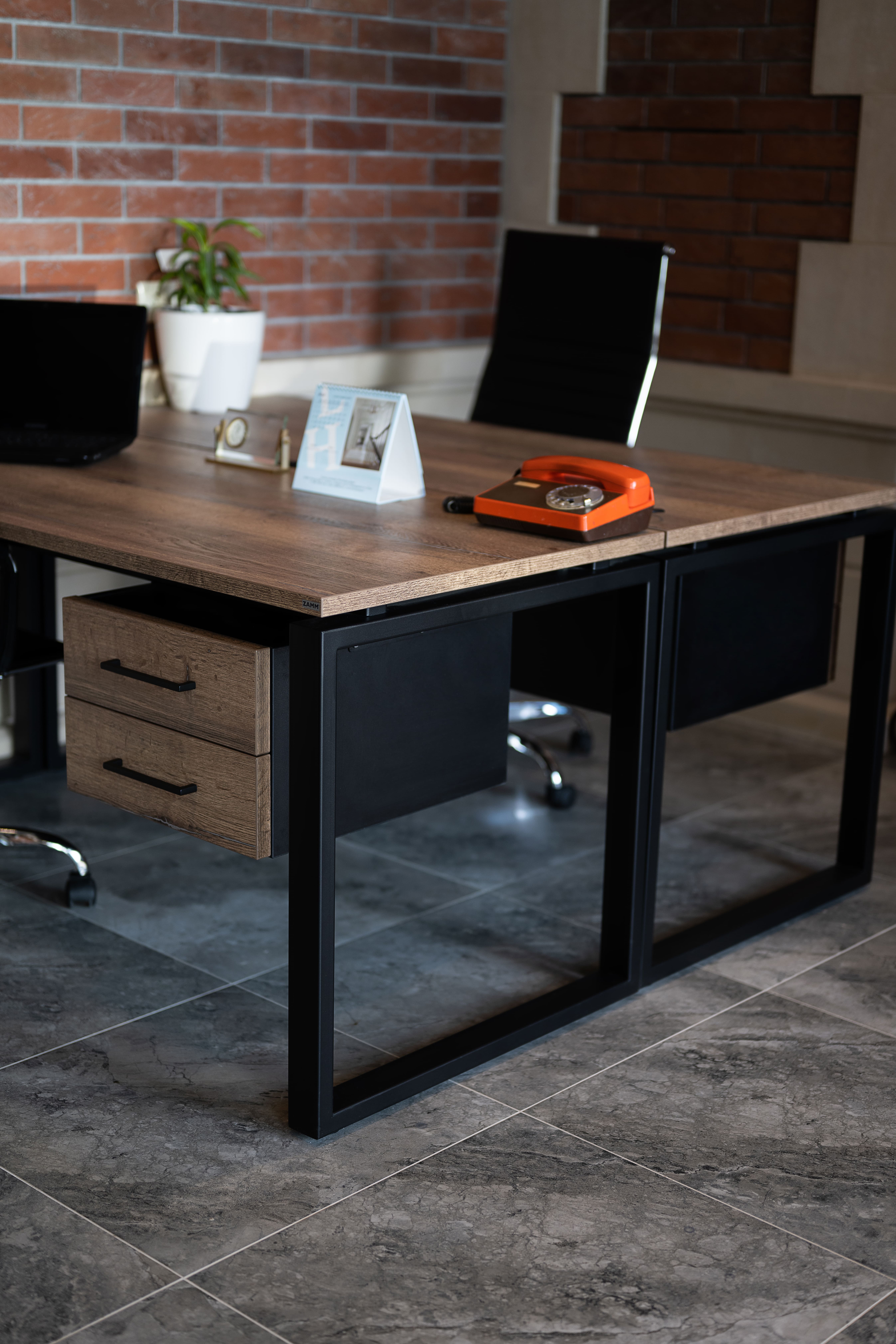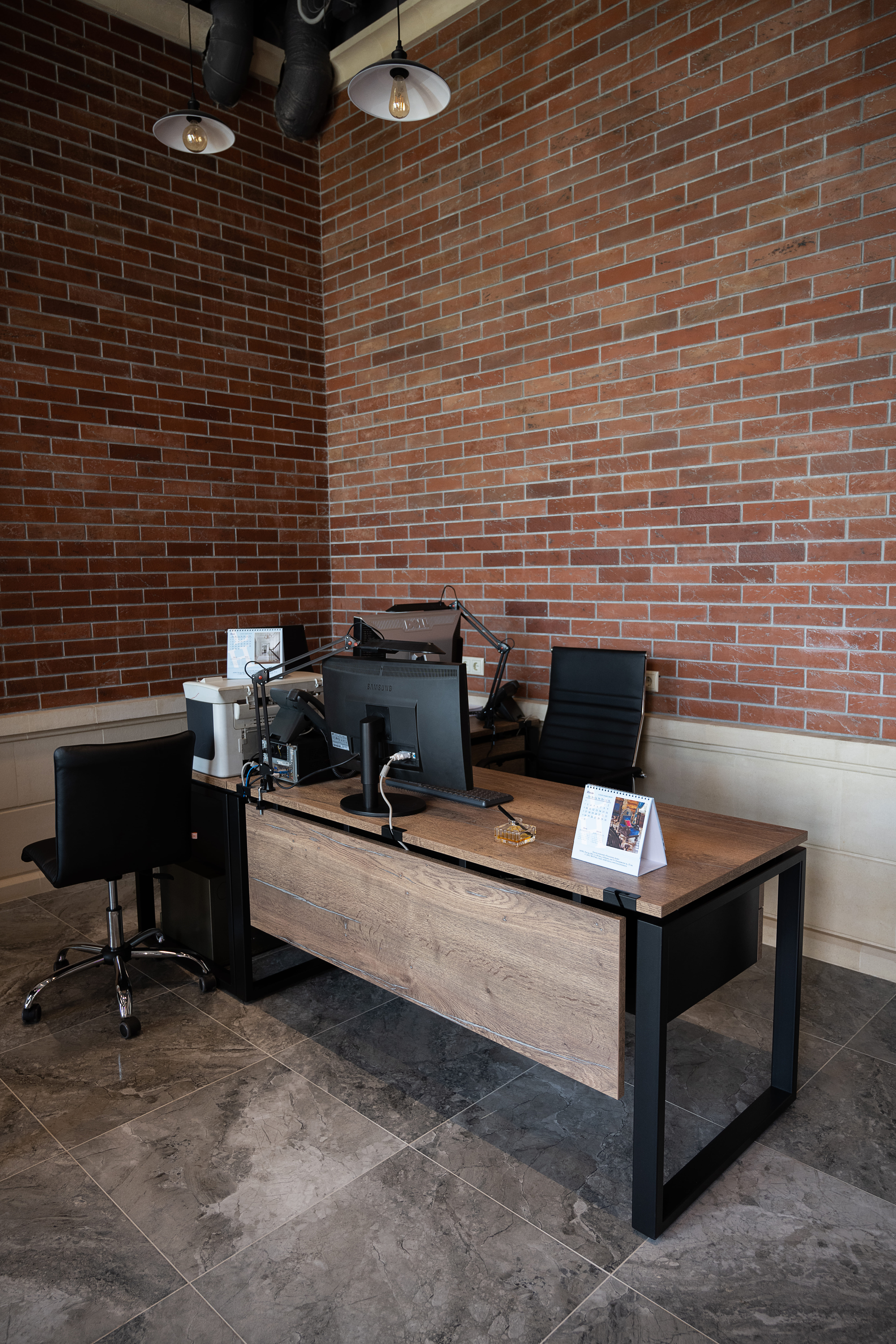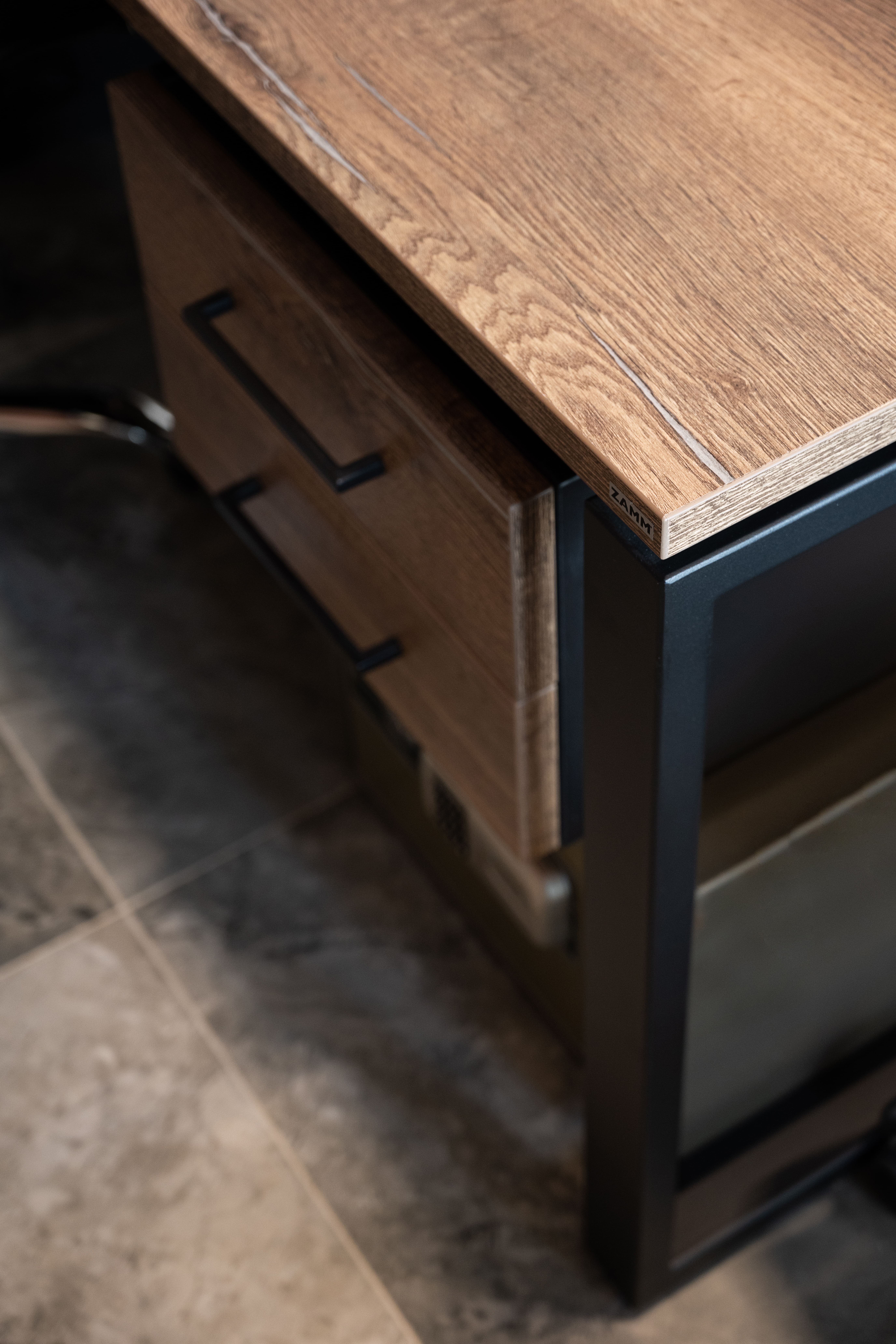 Офис на Новой Риге обрел задуманную эклектичность, благодаря сочетанию керамики ручной работы с современной мебелью ZAMM. В этом проекте мы использовали популярное сочетание столешницы в благородном цвете Дуб Галифакс и черного металлокаркаса. Оно придает интерьеру нотки изысканности.