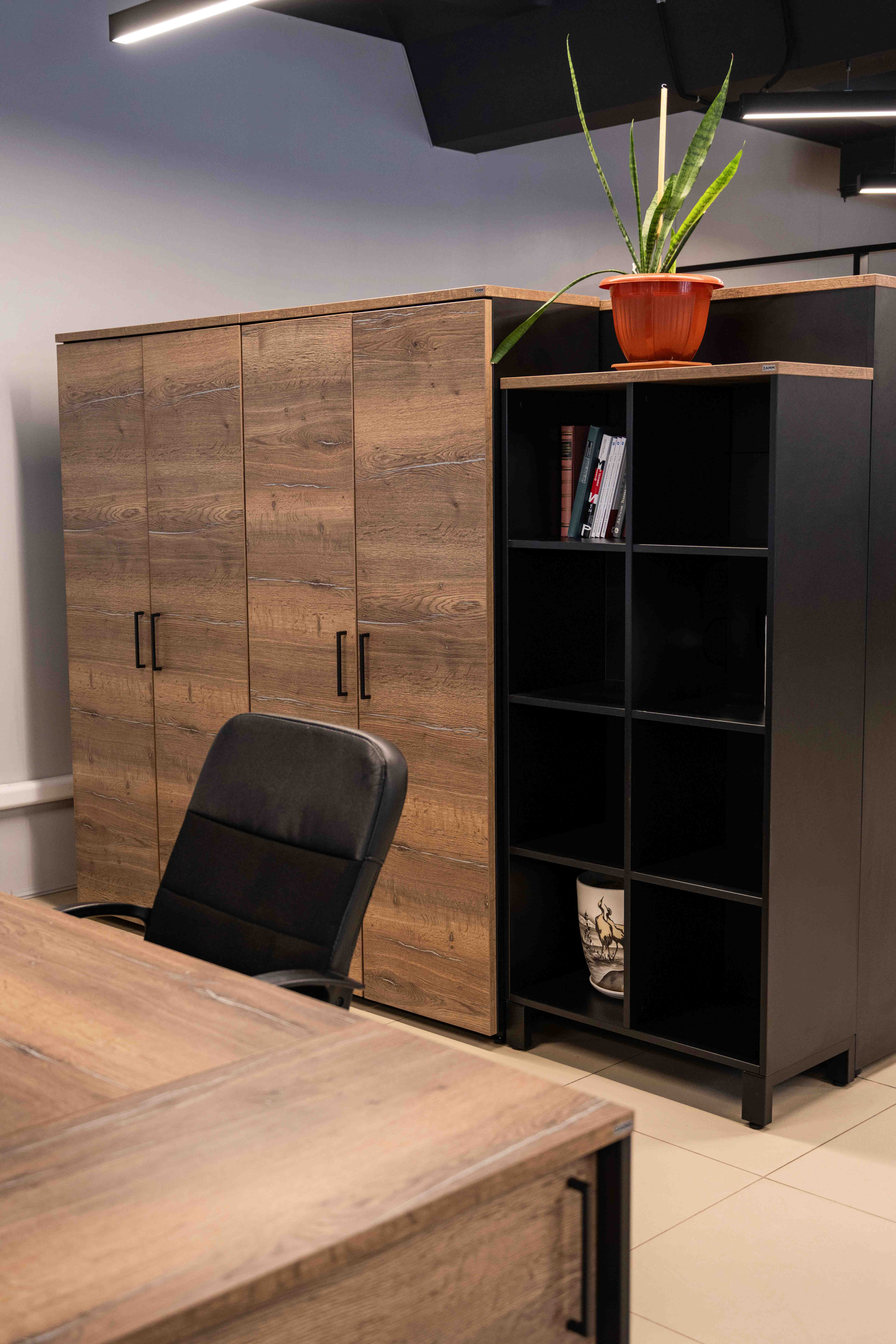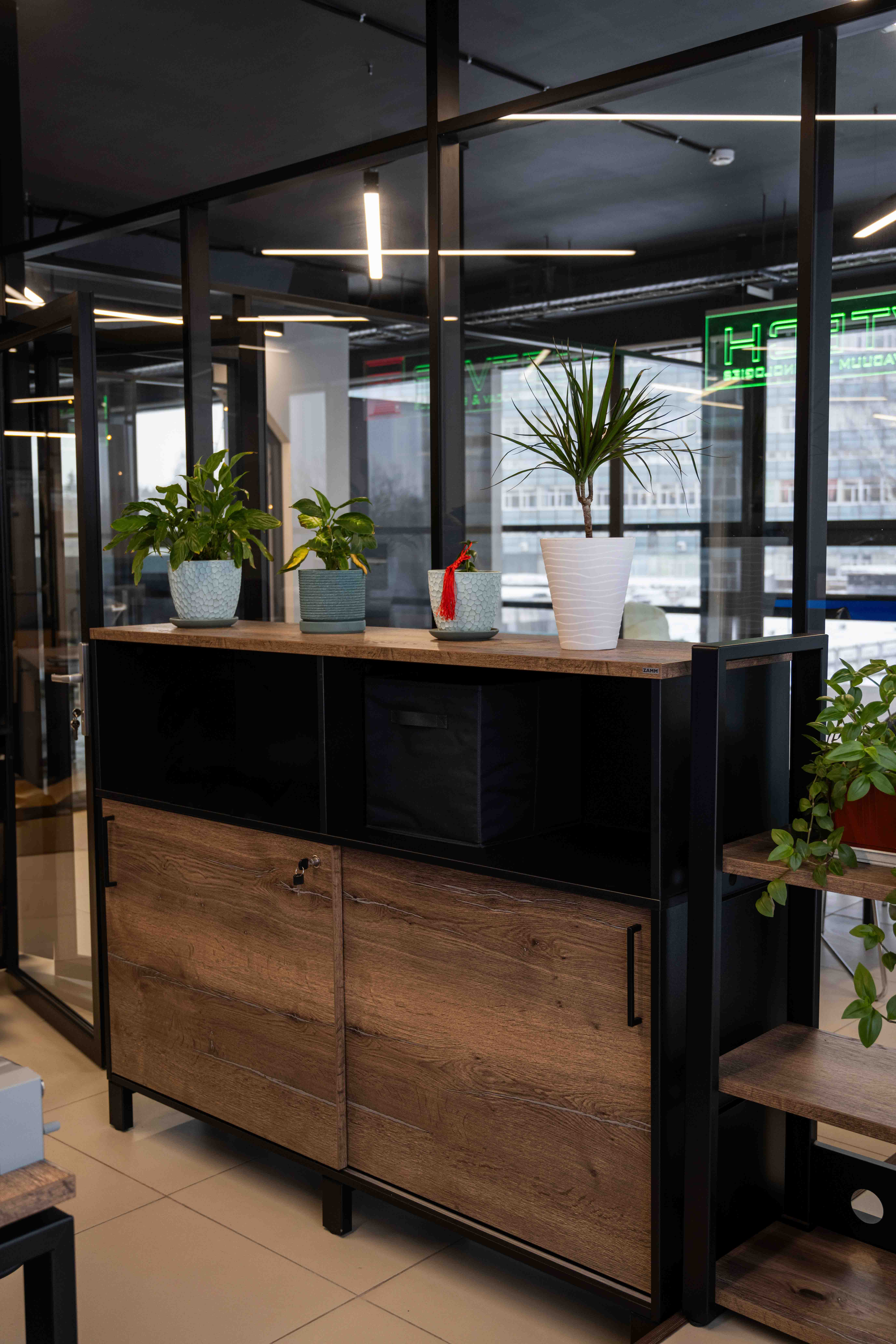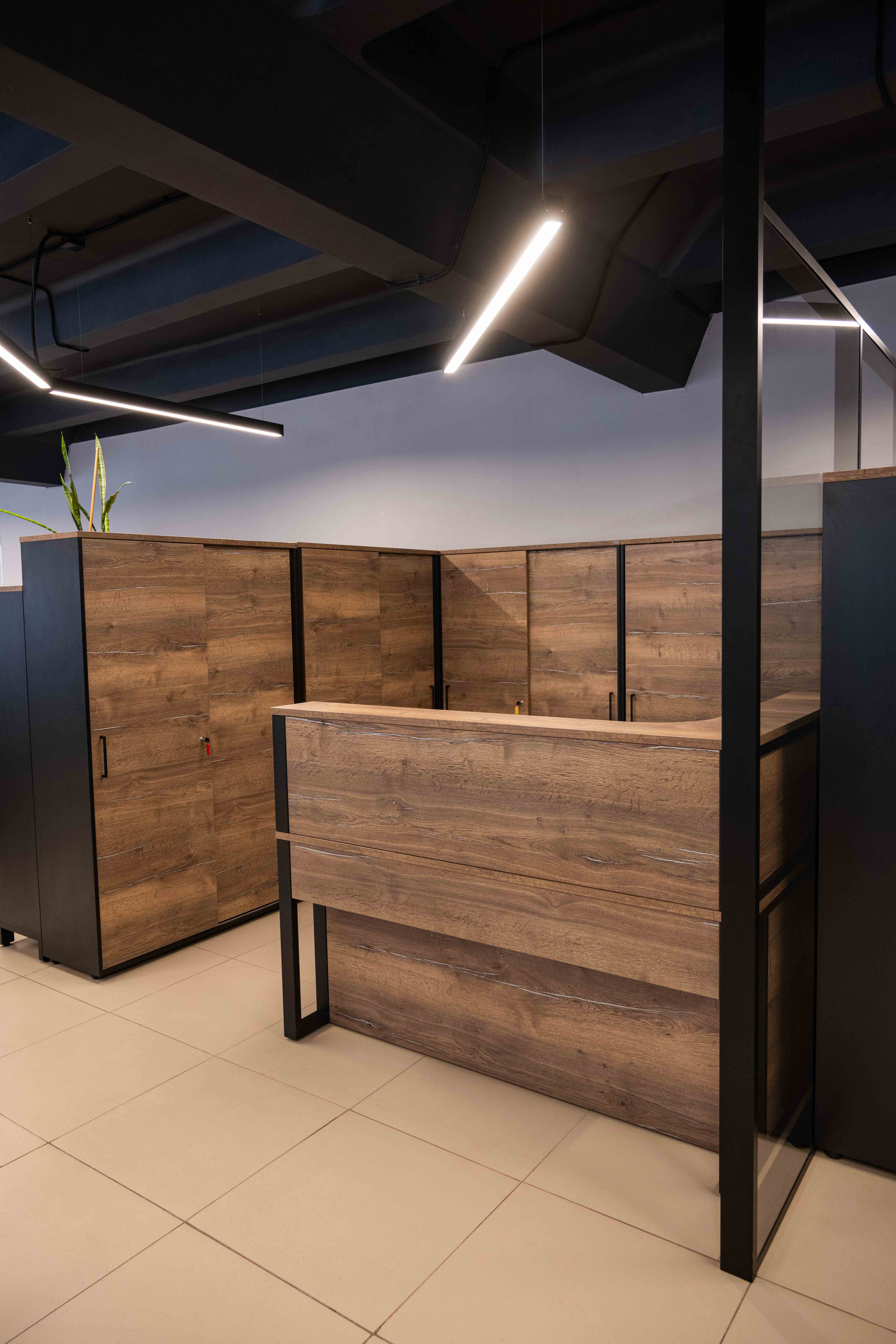 В первый офис клиент заказал шкафы для одежды и стильную мебель для переговорных комнат и кабинетов. В открытом пространстве open space установлены столы с тканевыми экранами, которые создают комфортное и уединенное место для работы. Обедают сотрудники компании за столом модели «Титан». Приемная, разделенная на зоны, также оборудована корпусной мебелью ZAMM, которая привносит нотки элегантности и легкости в строгое офисное пространство. Второй офис компании оборудован столами с тканевыми экранами для open spacе пространства, столом в форме усеченного овала в зоне для переговоров, кухонным столом в обеденной зоне и шкафами.