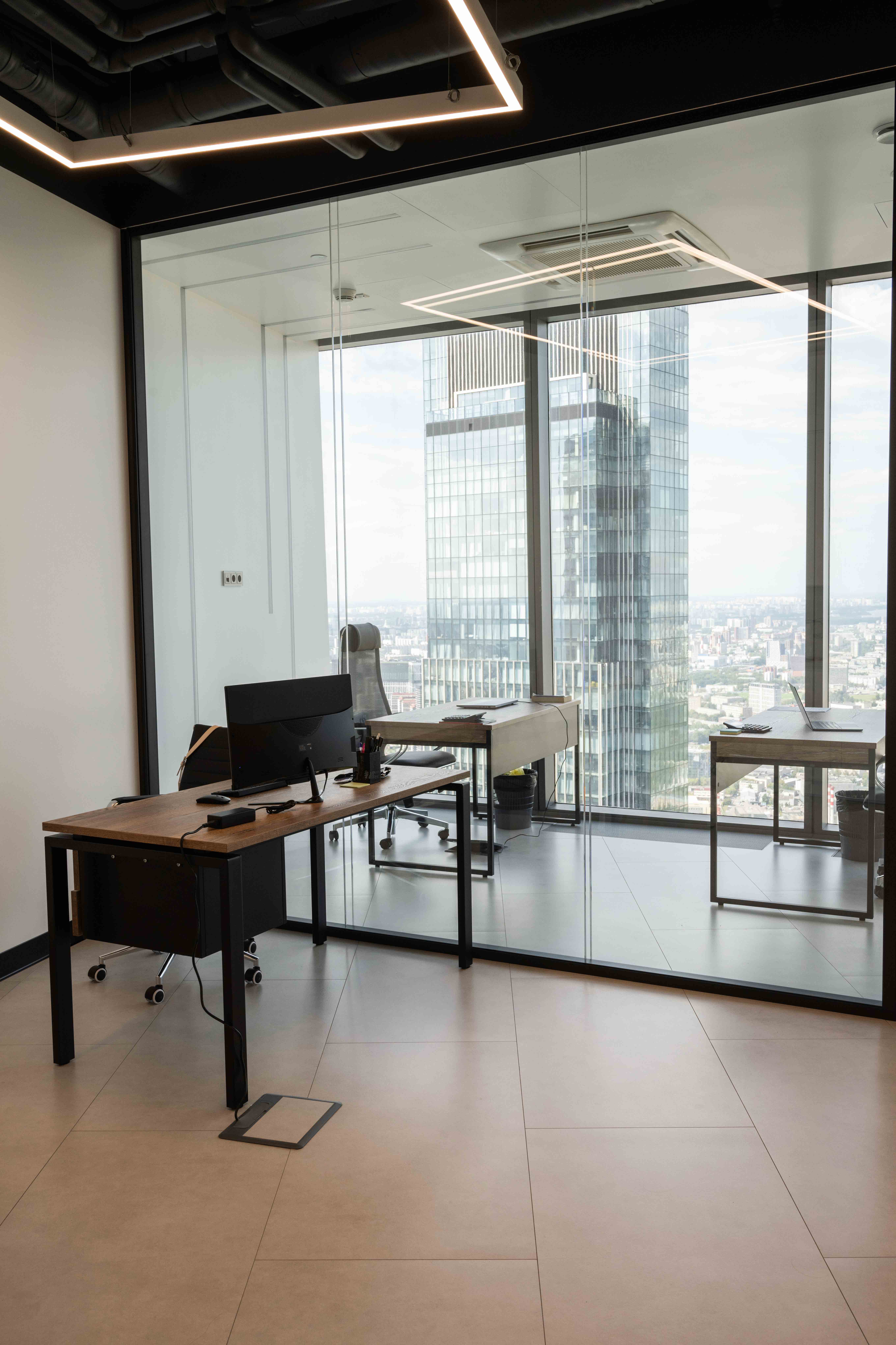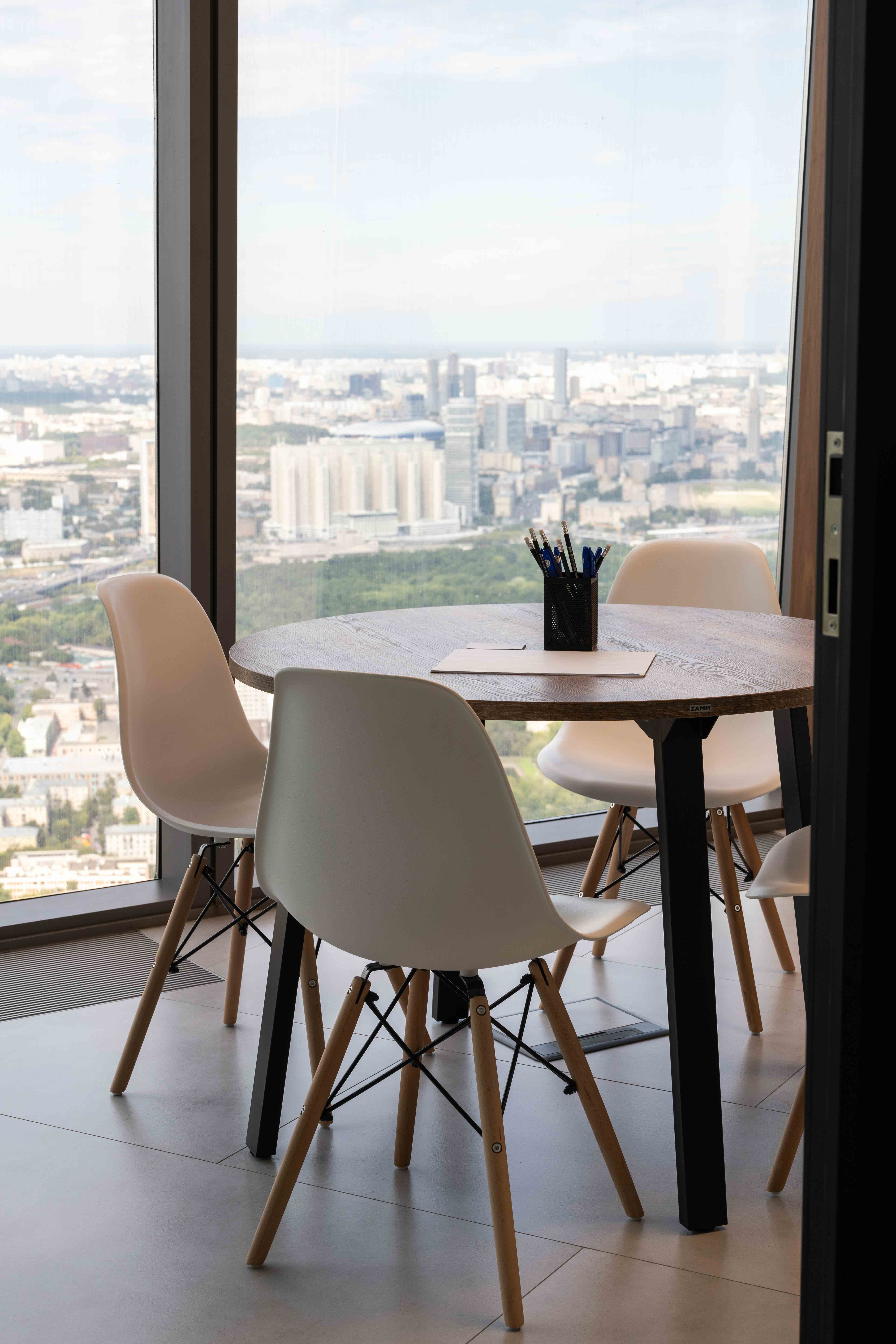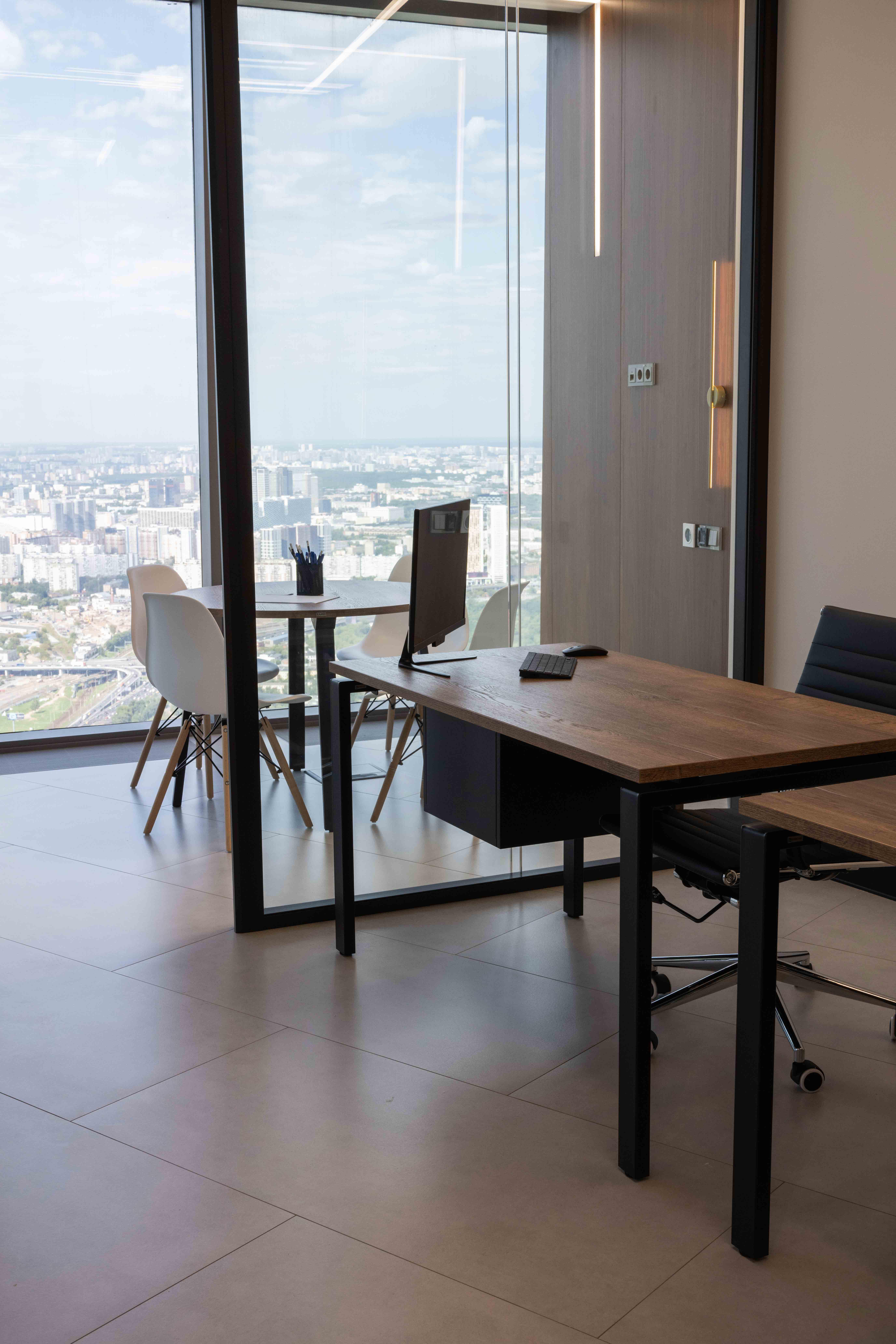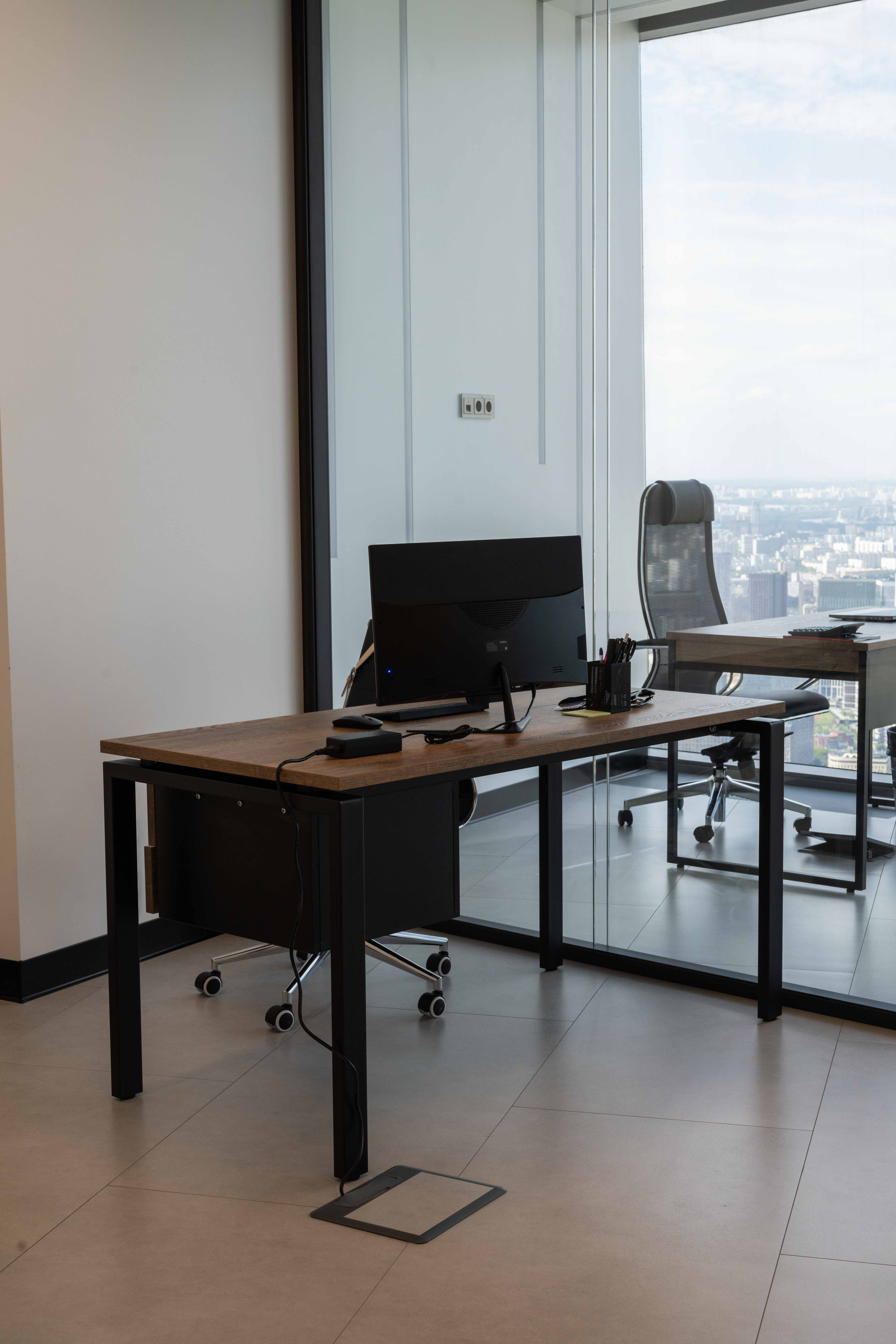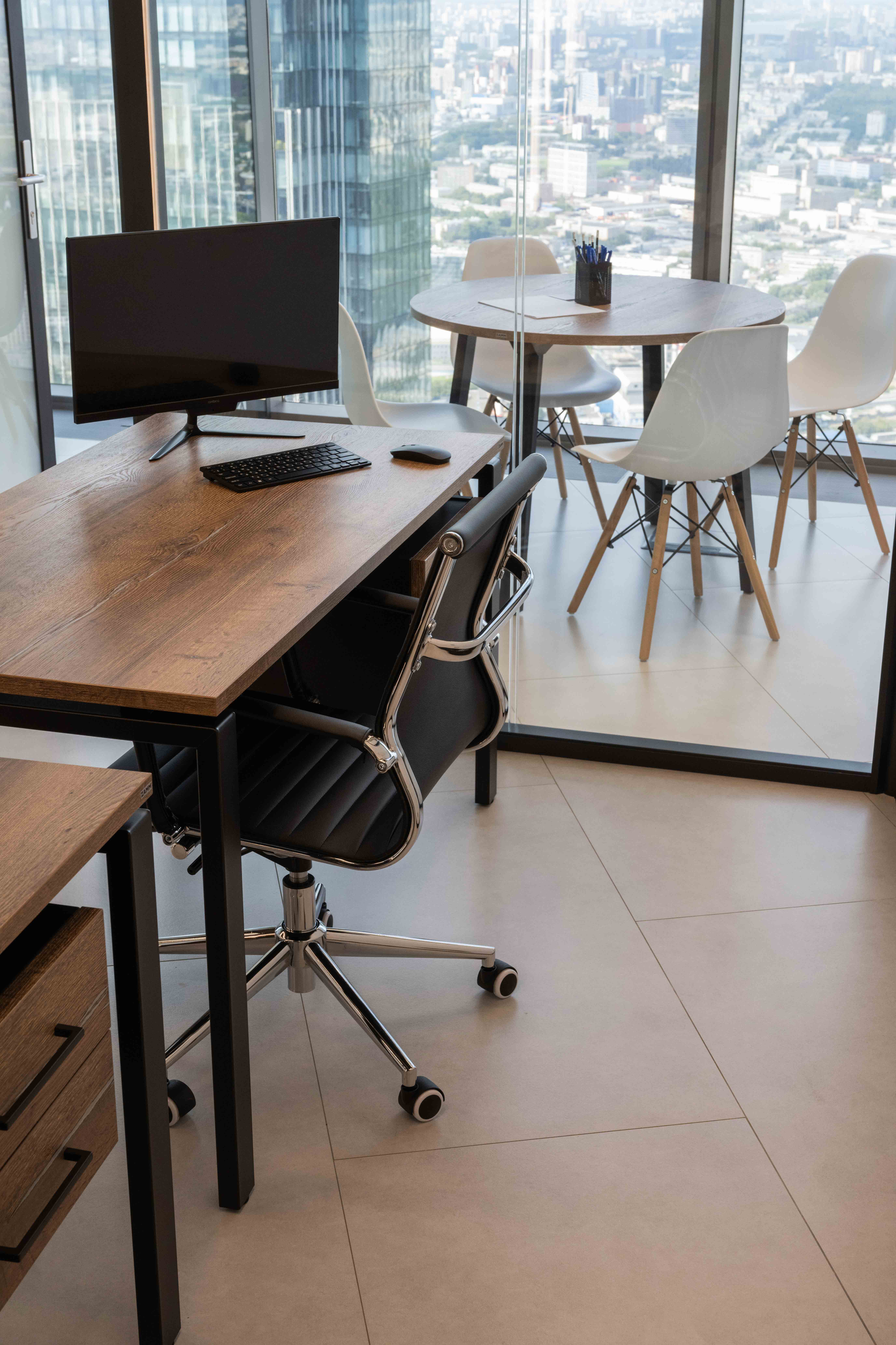 Наша Linda в благородном оттенке Дуб Галифакс потрясающе смотрится в кабинете руководства! А для сотрудников выбрана удобная минималистичная модель Формат ТР с двумя подвесными тумбами для хранения личных вещей и документов. На небольшой офисной кухне прекрасно поместился круглый кухонный стол, а еще один занял почетное место в переговорной зоне.